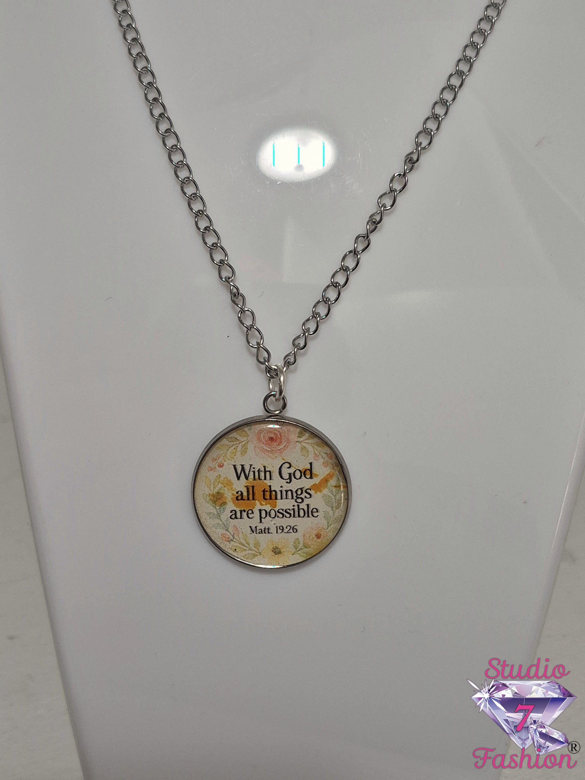 Discover the inspiring beauty of the All Things Possible Faith Necklace. This elegant piece serves as a timeless source of hope, courage, and spiritual conviction, perfect for year-round wear. The pendant proudly displays the unwavering truth: "With God all things are possible. Matt. 19:26." This iconic verse provides immense comfort and strength during times of challenge and celebration alike.